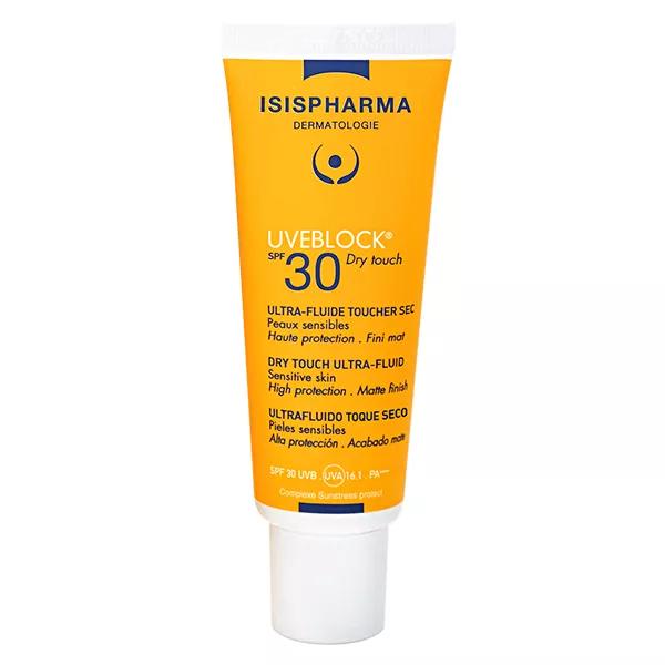 Isispharma Uveblock Ultra-Fluide Touché Sec SPF30+ 40ml élaboré à partir du complexe SUNSTRESS PROTECT, vous assure une protection optimale et complète contre les effets néfastes induits par les principaux rayonnements du soleil.