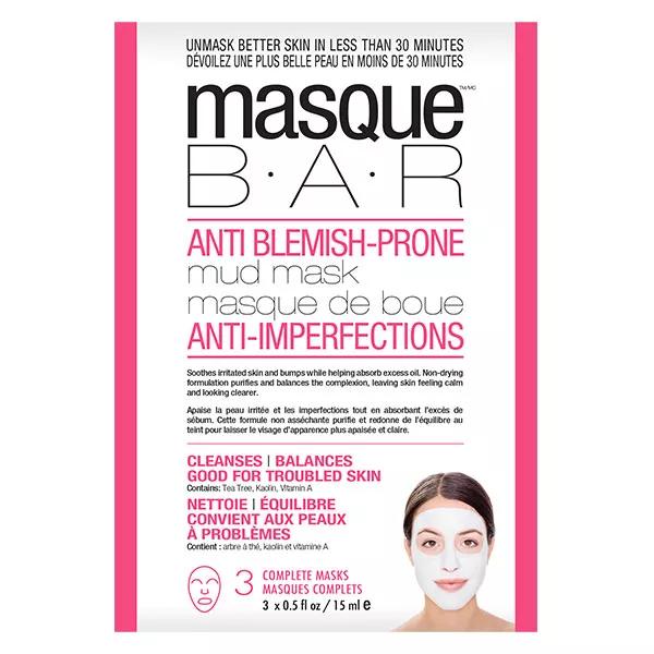 Le Masque Anti-imperfections 3 unités de B.A.R nettoie équilibre et apaise la peau irritée tout en aidant à contrôler l'excès d'huile.Sa formule non desséchante purifie le teint, laissant la peau calme et plus claire.Indications
