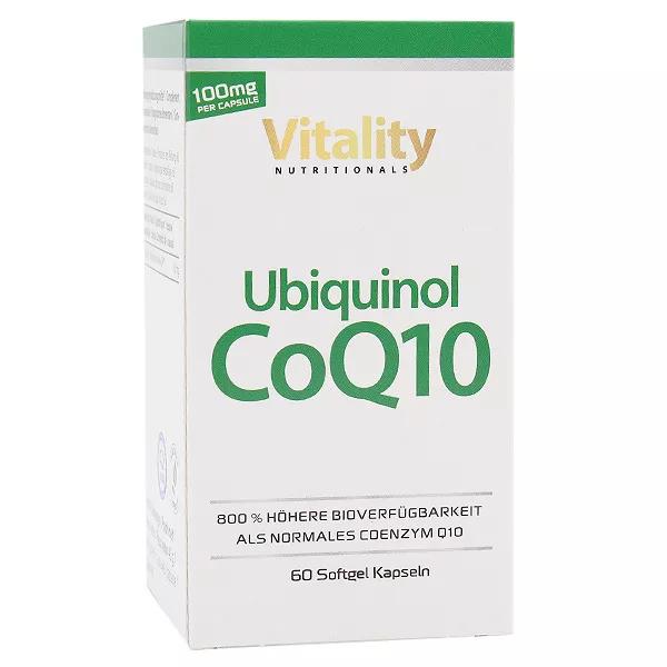 Descrizione ico-chevron-down Vitality Nutritionals Ubiquinol 100mg 60 capsules est un complément alimentaire du laboratoire Vitality Nutrtionals à base de coenzyme Q10.