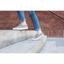 Ne pas porter de bague pointue, ne pas avoir d’ongles qui accrochent… Placer les pouces des mains dans la pointe et glisser le pied dans cette dernière. Dérouler délicatement, de sorte de bien placer le talon, puis le long de la jambe jusqu’au mollet. Faire de même avec l’autre jambe. Répartir le textile avec le plat des mains.
