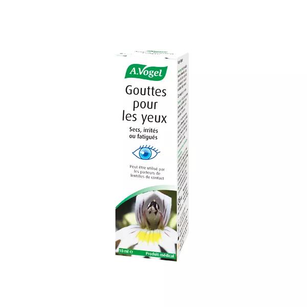 A base d'euphraise et d'acide hyaluronique, les gouttes pour les yeux de A. Vogel soulagent les yeux irrités ou fatigués. Elles conviennent également aux personnes portant des lentilles.