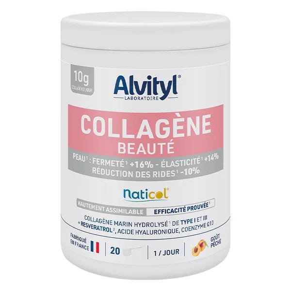 Alvityl® Collagen Beauty è una formula unica composta da Naticol® Collagen, Resveratrolo², Acido Ialuronico e Coenzima Q10 per un'assunzione giornaliera di 10 g di collagene idrolizzato. Naticol® Collagen Tipo I e III è di origine marina e puro al 99% nella sua forma secca. Prodotto in Francia, ha un basso peso molecolare e un'elevata biodisponibilità. Il collagene viene idrolizzato in peptidi con un profilo aminoacidico unico (glicina, prolina, idrossiprolina, ecc.) e simile a quello del collagene umano. Uno studio clinico³ ha dimostrato il buon assorbimento plasmatico di Naticol® Collagen e quindi un'assimilazione ottimale da parte dell'organismo. Studi clinici¹ ne dimostrano l'efficacia sulla bellezza della pelle. Migliora l'elasticità (+14%) e la compattezza (+16%) della pelle, riducendo al contempo la comparsa delle rughe (-10%).