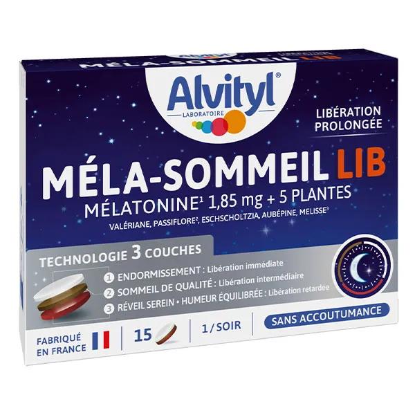 Alvityl Méla-Sommeil LIB est un comprimé tricouche à libération prolongée composé de Mélatonine et de 5 plantes qui agit sur les différentes phases du sommeil, notamment en cas de nervosité.