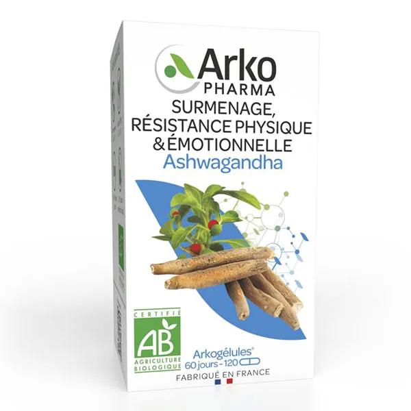 Arkopharma Arkogélules Superlavoro, Resistenza Fisica ed Emotiva Ashwagandha Biologica 120 capsule, una formula di origine biologica concentrata in principi attivi mirati.