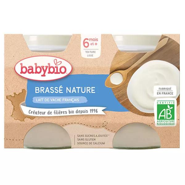 Descrizione ico-chevron-down Babybio Douceur de Lait Pot au Lait de Vache Nature +6m Bio Lot de 2 x 130g sont des petits pots brassés au lait de vache français.