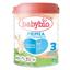 Nourrir votre bébé est un moment unique qui allie complicité, tendresse et partage. Grâce à notre recette Primea Croissance, qui convient aussi en relais et/ou en complément de l'allaitement, profitez sereinement de ce moment biberon avec bébé dès 10 mois et jusqu'à ses 3 ans. Rien de tel qu'un lait infantile fabriqué en France, à partir de bon lait de vache bio français, et sans huile de palme pour partager ces moments de tendresse avec bébé. Et le petit plus de notre recette Primea Croissance ? Nous garantissons la juste rémunération de nos éleveurs partenaires et nous travaillons avec des agriculteurs engagés qui respectent le bien-être animal (accès au plein air dès que les conditions météo le permettent, nourries majoritairement avec des fourrages issus de la ferme, etc). Ce n'est pas tout ! La recette Croissance existe aussi sous format liquide en bouteille d'1L ou de 25cl (directement tétinable) ! Pratique et ludique pour accompagner l'éveil de bébé. Le saviez-vous ? Nous sommes une PME française, pionnière de l’alimentation infantile bio et à l’origine du 1er lait infantile bio français pour bébé. Depuis plus de 25 ans, nos équipes bordelaises passionnées de nutrition ont su mettre tout leur savoir-faire au service des bébés pour que vous puissiez profiter du moment biberon en toute sérénité avec notre formule Croissance de la gamme Primea. Ne convient qu'à l'alimentation particulière des nourrissons ayant atteint l'âge d'au moins 6 mois et ne peut être qu'un élément d'une alimentation diversifiée. L'introduction d'aliments de compléments y compris avant l'âge de 6 mois ne doit se faire que sur avis d'un professionnel de santé. Le lait de suite ne peut pas être utilisé comme substitut du lait maternel pendant les 6 premiers mois de la vie. Primea 3 est formulé conformément à la réglementation sur les laits de suite.Indications