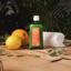 Eau, d'huile essentielle de romarin, de savon à base d'huile d'olive, de savon à base d'huile de tournesol, d'huile essentielle de lavande vraie, d'huile essentielle de lavandin, d'alcool biologique, d'extrait de fleur d'arnica biologique, d'extrait de feuille de bouleau biologique et d'huiles essentielles.