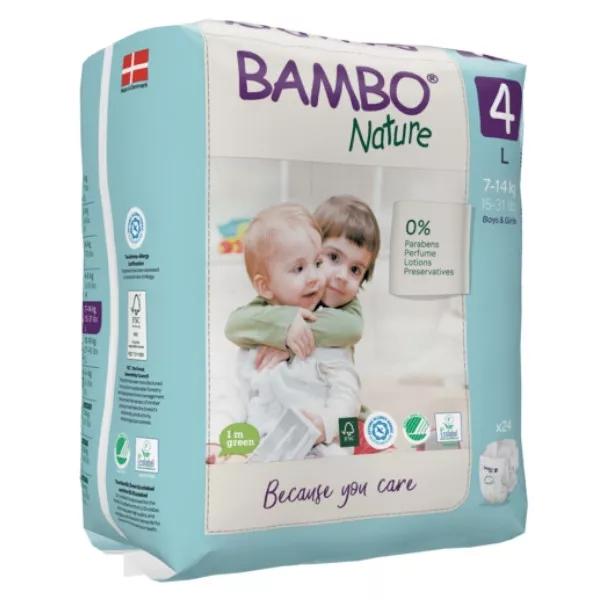 Bambo Nature Couche Taille 4 7-14kg 24 unités sont dites "écologiques" car issues d’une fabrication écoresponsable privilégiant des matières premières durables et conçues avec moins d’impact sur l’environnement qu’une couche classique.