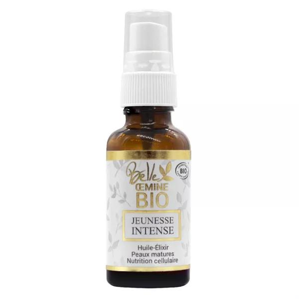 Belle Oemine vous propose une Huile Elixi Jeunesse Intense principalement réalisée pour les peaux matures et fatiguées. Cet Elixir de beauté 100% naturel permet de limiter la distension et la dénutrition des peaux fatiguées. Avec sa formule aux huiles végétales anti-radicalaires et nourrissantes, du calcium-ketogluconate associé à du squalane hydratant et de la vitamine E antioxydante. Il va lisser e nourrit la peau, la re pulper et la sublimant.