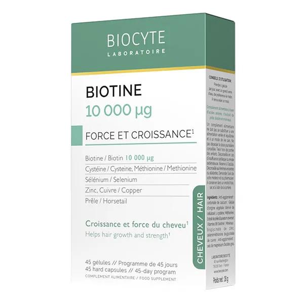 Biocyte - Biotina 10.000 µg - Forza, Crescita dei Capelli - Integratore Anti-Caduta dei Capelli - 45 Capsule