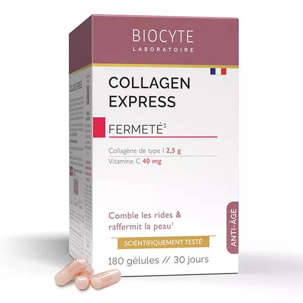 Découvrez Biocyte Collagen Express en gélules, une formule concentrée en collagène (2,5 grammes pour 6 gélules) pour favoriser la régénération cutanée et retrouver une peau plus lisse.