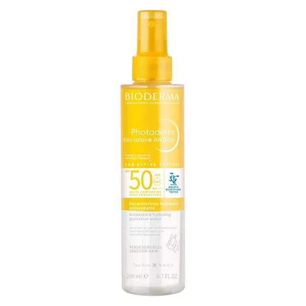 Bioderma Photoderm Eau Solaire ANTI-OX SPF50+ 200ml est une protection solaire anti oxydante qui offre une hydratation intense et prévient le photo vieillissement.