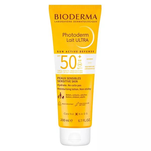 Bioderma Photoderm Lait Ultra SPF50+ 200ml est un lait solaire PHOTODERM de BIODERMA indice élevé 50+ est approprié pour les peaux très sensibles au soleil et en recherche d'une texture plus fluide que la crème solaire classique pour une application sans effort et agréable.