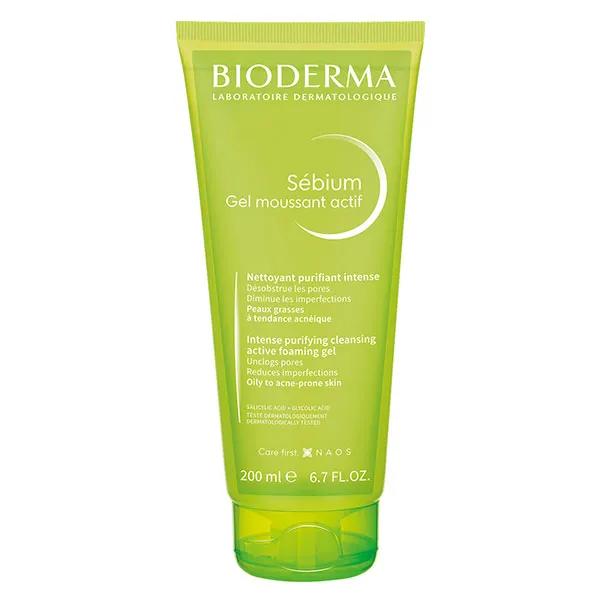 Bioderma Sébium Gel Moussant Actif Nettoyant Purifiant Peaux Grasses 200ml aide à désobstruer les pores, à diminuer les imperfections et à réduire les brillances grâce à un duo d'actifs lissants (acide salicylique + acide glycolique).