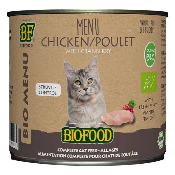 Biofood Organic Menù per gatti a base di carne di pollo biologica al 79%. Lattina da 200 g.