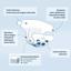 Système de fixation (bande confort, attaches et oreilles élastiques) : Polyéthylène ; Polyuréthane ; Polyester ; Colle.