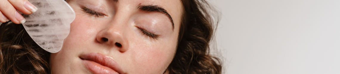 Avec ou sans soin, faites glisser délicatement la pierre Gua Sha sur l'ensemble du visage en exerçant une légère pression. Procédez de l'intérieur vers l'extérieur du visage, puis de bas en haut.