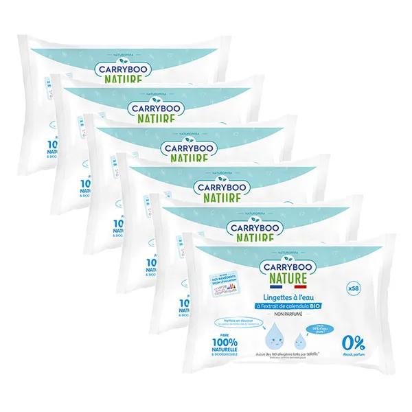 6 x Carryboo Soins Lingette à l'Eau Pure Calendula Bio 58 unités