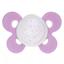La sucette est dotée d'une tétine active en silicone extra-doux dont le bout est incurvé et comporte des micro nervures qui aident bébé à bien positionner sa langue et ses lèvres. La base de la tétine est fine et étroite pour permettre à bébé de pouvoir bien fermer sa bouche et l'anneau de la sucette la rend pratique à tenir ou à attacher à l'attache sucette.