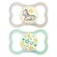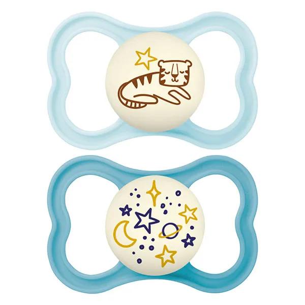 Descrizione ico-chevron-down I succhietti in silicone MAM Supreme Night 18+ x2 sono progettati per ridurre il rischio di disallineamento dei denti e consentire alla pelle del bambino di respirare. Clinicamente testato.