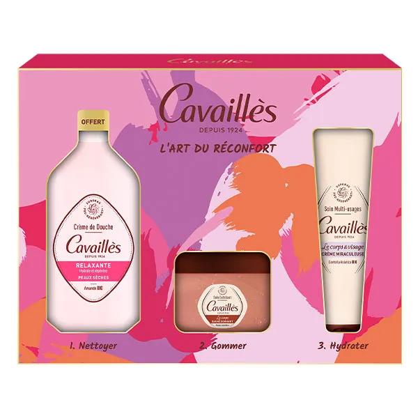Composto da una crema multiuso miracolosa, un balsamo esfoliante e un olio doccia vellutato, immergiti nel mondo Cavaillès e goditi un momento di benessere.Indications