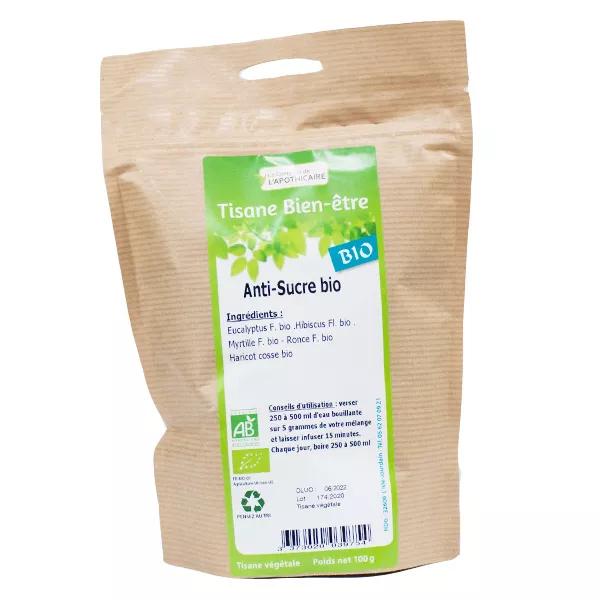 Comptoir de l'Apothicaire Tisane Anti Sucre Bio 100g est un complément alimentaire du laboratoire Comptoir de l'Apothicaire à base de feuille d'Eucalyptus, de fleur d'Hibiscus, de feuille de Myrtille, de feuille de Ronce et d'abricot cosse issus de l'agriculture biologique".