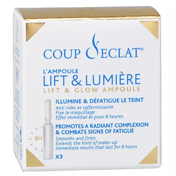 Coup d'Eclat Ampoules Lift & Lumière Visage Boite de 3 est une solution pour la peau froissée, fatiguée, ridée, les traits relâchés. Cette solution anti-rides et raffermissante est votre atout pour une mise en beauté immédiate et durable (pendant 8 heures).