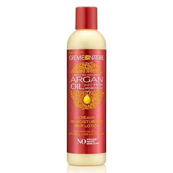 lotion hydratante Creme of Nature à base d'huile d'Argan du Maroc est un traitement intensif qui renforce le cheveu en profondeur et lui apporte brillance et protection contre la chaleur. Cette formule est riche en huile et hydrate le cuir chevelu.