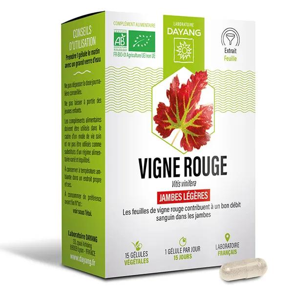 Dayang Vigne Rouge Bio Jambes Légères est un complément alimentaire à base d'extrait de concentré de Vigne Rouge, un actif qui soutient le bon fonctionnement de l'appareil circulatoire.
