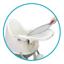 2ème utilisation en rehausseur : les pieds de la chaise retirés, les sangles (dossier et sous assise) sont à ajuster sur une chaise adulte.