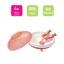 Assiette avec réservoir pour eau chaude; ce compartiment sous l’assiette est fermé avec un bouchon étanche. Ce bain-marie gardera les aliments de bébé au chaud pendant la durée de son repas. Une ventouse amovible sous l'assiette permet de la stabiliser. Fourchette et cuillère assorties avec manches non glissants. Dimensions: H.18 x L.11 x l.7 cm.