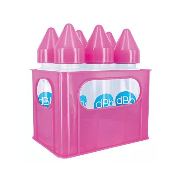 rosa portabottiglie dBb Remond e 6 bottiglie è ideale per il deposito e lo stoccaggio di alimenti per l'infanzia. Infatti, godere di 6 bottiglie di regolatori di polipropilene di aria di 270 ml con gradazione per facilità e dosaggio ottimale. Queste bottiglie con silicone capezzoli possono ridurre la quantità di aria ingerito durante colica infantile e di alimentazione.