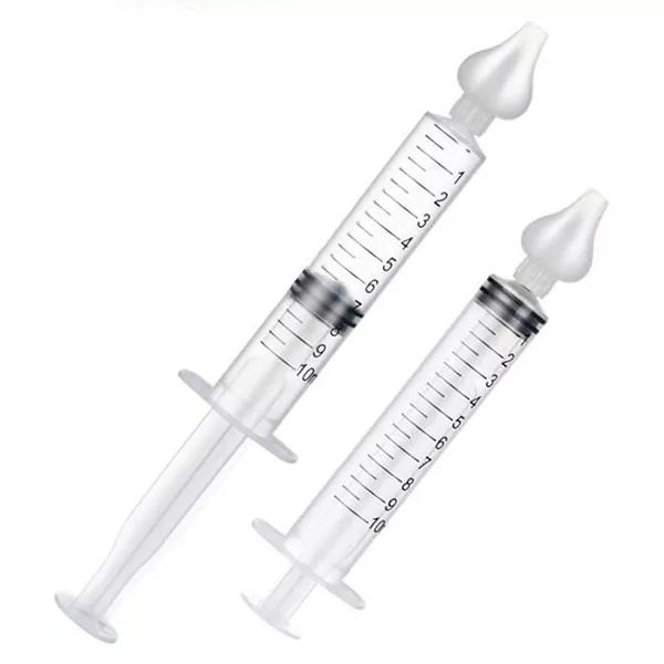 Seringues nasales de 10ml à remplir de sérum physiologique pour laver et dégager efficacement le nez de bébé mais aussi celui des adultes. Embouts en silicone souple pour plus de confort.