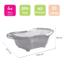 Deux poignées en caoutchouc anti-dérapantes facilitent la prise en main. Pieds anti-dérapants 3 encoches pour avoir à portée de main savon, éponges et autres accessoires. En plastique translucide avec un bouchon de vidange facilitant l'évacuation de l'eau.
