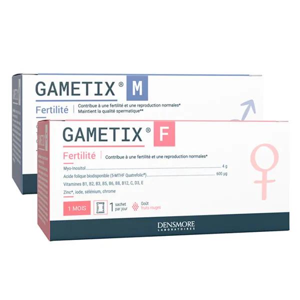 Les deux produits se présentent sous forme de poudre et chaque boîte contient 30 sachets, soit un mois de cure. Gametix® F a une saveur de fruits rouges et Gametix® M a un goût d'orange.