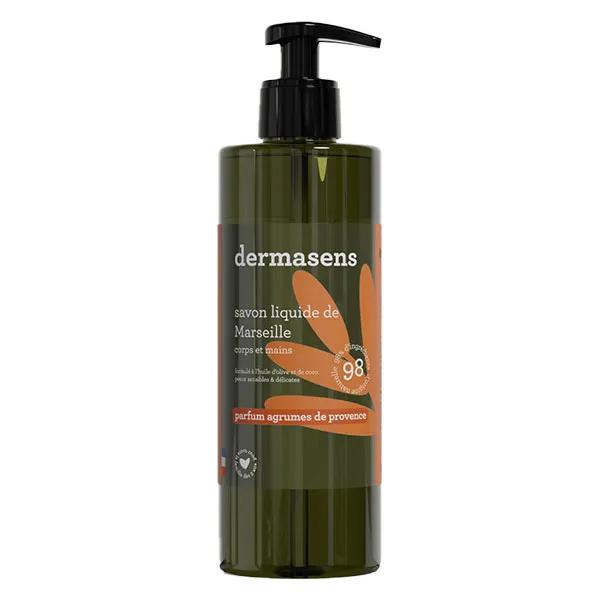 Descrizione ico-chevron-down Dermasens Savon de Marseille Liquide Agrumes de Provence 1L contient 98% d'ingrédients d'origine naturelle. Il est fabriqué de manière traditionnelle, à base d'huile d'olive et de coprah.
