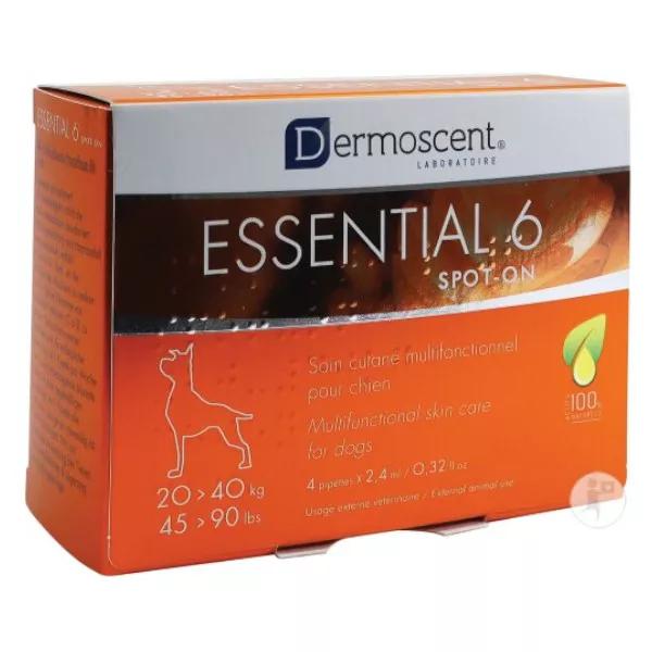Dermoscent E6 Chien propose 6 actions en un seul soin :- Soutien la fonction de la barrière cutanée et restaure l'hydratation- Agit sur la brillance du poil- Limite la chute du poil, hors période de mue, et favorise sa repousse- Réduit la présence de pellicules- Désodorise le poil, sans gêner l'animal- Protège par son pouvoir antioxydantEnfin, ce soin de la peau pour chien à la formule concentrée et sans parfum ajouté permet d'espacer la fréquence des shampooings et de remplacer la prise de compléments alimentaires en acides gras essentiels.Indications
