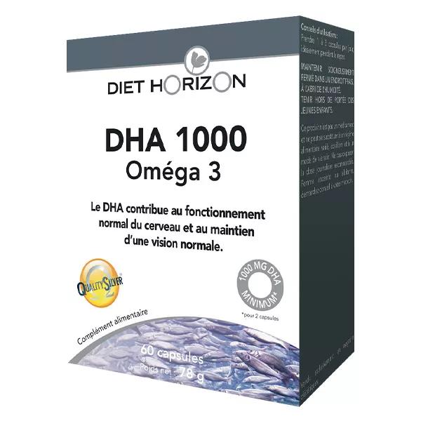 Le complément alimentaire DHA 1000 de Diet Horizon est formulé pour apporter à l'organisme tous les acides gras nécessaires au bon fonctionnement du cerveau et de la vue. Bien souvent, l'alimentation ne couvre pas les besoins de l'organisme en Oméga 3 (300 à 400 grammes par jour minimum).