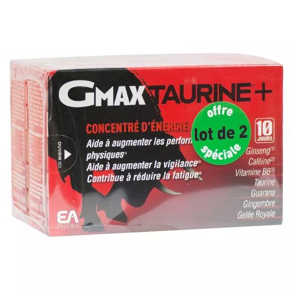 Gmax + taurina del laboratorio EA Pharma è un integratore alimentare "concentre energie": una formula completa che aiuta a ridurre l'affaticamento e aumentare la vigilanza. "Contiene estratti di piante, pappa reale, taurina, ginseng, guaranà, caffeina e vitamina B6.Potrete godere il gusto di arancia.Senza zuccheri aggiunti.