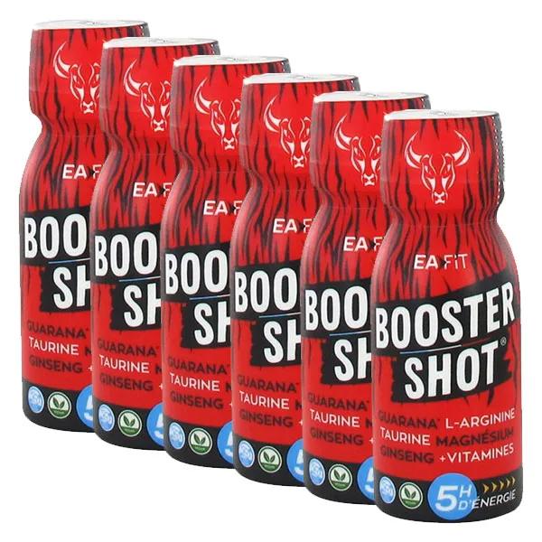 Eafit Booster Shot 60ml - Confezione da 6 è un integratore alimentare del laboratorioEafit a base di estratto di guaranà, taurina, L-arginina, citrato di colina, magnesio, D-glucuronolattone, estratto di ginseng, caffeina e vitamine B3, B5, B6, B9 e B12.