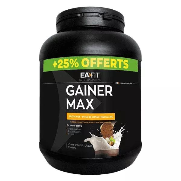 Eafit Gainer Max Chocolat Noisette 1,1kg est une préparation pour boisson avec apport glucidique sous forme de poudre, spécifiquement formulée pour répondre aux personnes recherchant une prise de masse.