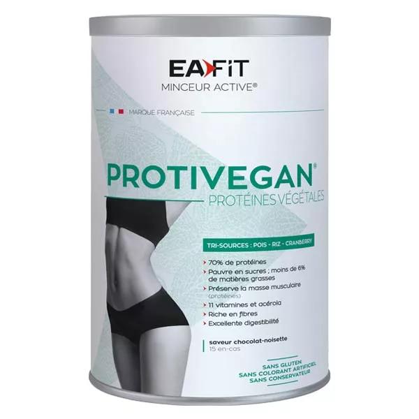 Eafit Protivegan Goût Chocolat Noisette 450g est une préparation pour en-cas hyperprotidique à faible teneur en sucres et qui contient 3 sources de protéines végétales (pois, riz, cranberry) pour une tolérance optimale préservant la masse musculaire.