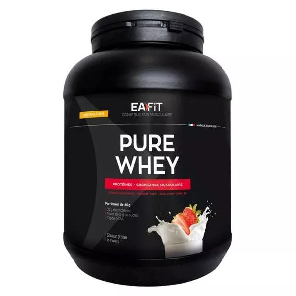 Eafit Pure Whey Fraise 750g est une préparation hyperprotidique pour boisson sous forme de poudre avec édulcorants, spécialement élaborée pour les sportifs recherchant une croissance musculaire.