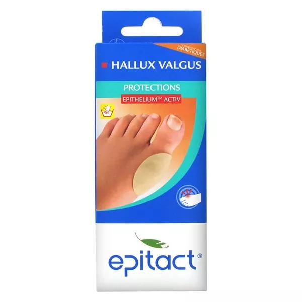 EPITACT alluce valgo protezioni 2 unità sono autoadesivi per proteggere e per alleviare l'alluce valgo (alluce valgo) attraverso l'epitelio Activ gel.Il gel di epitelio Activ distribuisce la pressione e diminuisce l'attrito all'origine del dolore.Molto sottile, queste protezioni essere utilizzato giorno in tutte le scarpe. Sono adatti anche per il piede diabetico.Dimensione: 4.4 x 5.6 cm.