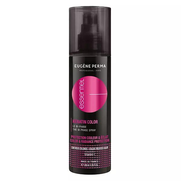 Essentiel est une gamme de soins capillaires double expertise à la kératine et aux actifs végétaux pour répondre à toutes vos exigences : réparer et sublimer. Chaque rituel KERATIN contient de la kératine, reconnue pour ses propriétés renforçatrices et anti-casse. Elle est associée à un actif complémentaire pour s'adapter parfaitement aux besoins de chaque type de cheveux. Les formules sont à l'efficacité et aux résultats prouvés.Le Bi-Phase Keratin Color ESSENTIEL d'EUGENE PERMA vient compléter votre rituel pour cheveux colorés. Sans rinçage, il offre un voile multi protecteur aux cheveux colorés.