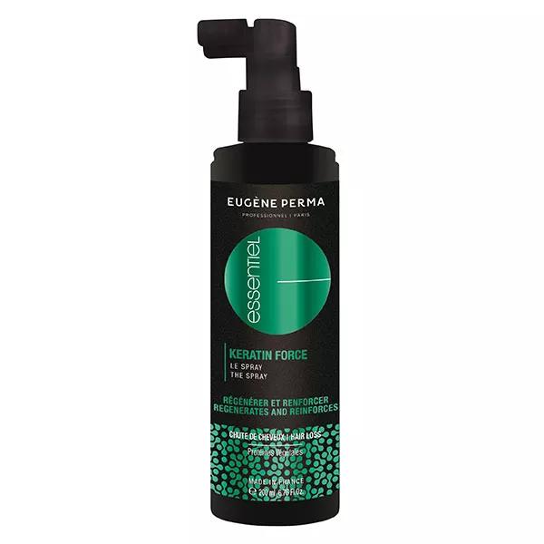 Essentiel est une gamme de soins capillaires double expertise à la kératine et aux actifs végétaux pour répondre à toutes vos exigences : réparer et sublimer. Chaque rituel KERATIN contient de la kératine, reconnue pour ses propriétés renforçatrices et anti-casse. Elle est associée à un actif complémentaire pour s'adapter parfaitement aux besoins de chaque type de cheveux. Les formules sont à l'efficacité et aux résultats prouvés.Le Spray Essentiel Keratin Force d'EUGENE PERMA Professionnel est un soin sans rinçage pour régénérer et renforcer les cheveux en situation de chute. Avec ses propriétés stimulantes et régénératrices, il améliore la qualité du cheveu.