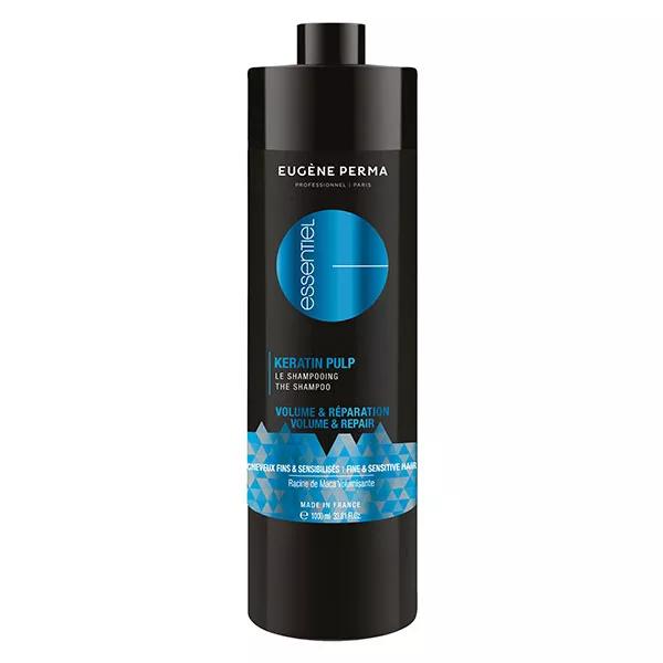 Le Shampooing Keratin Pulp ESSENTIEL d'EUGENE PERMA repulpe les cheveux fins. Il lave en douceur et laisse la fibre parfaitement propre et légère. Il répare le cheveu tout en lui apportant du volume.