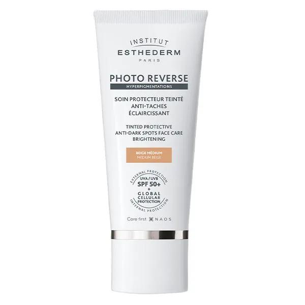 Esthederm Photo Reverse Soin Protecteur Eclaircissant Anti-Tâches Teinté Beige Médium 50ml est un soin solaire anti-tâches haute protection éclaircissant, préventif et correcteur des hyperpigmentations.