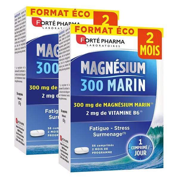 Forté Pharma Magnesium 300 Marine - Confezione da 2 x 56 compresse è un integratore alimentare che aiuta a ridurre la stanchezza e lo stress, sviluppato dai Laboratori Forté Pharma per aiutarti a rilassarti e ritrovare la serenità.