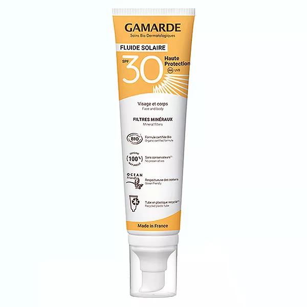 Gamarde Solare Alta Protezione SPF30 Bio 100ml è una protezione per tutti i tipi di luce solare. A base di filtri 100% minerali e la sua texture fluida e invisibile non lascia segni bianchi. La sua texture fluida e invisibile non lascia segni bianchi.